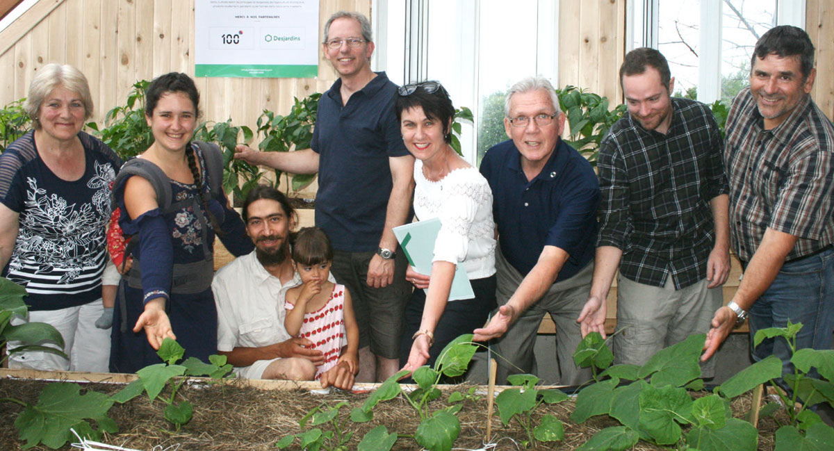 L’inauguration officielle de la Serre 100 degrés-Desjardins a eu lieu le 13 juillet 2019 en présence d’une trentaine de personnes. Merci aux organismes impliqués! Des membres actifs de la coopérative s’en servent actuellement pour leurs divers projets horticoles.